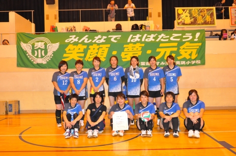 国吉中学校体育館を会場として、夷隅地区PTAバレー大会が開催されました。夷隅小PTAバレーボール部も新しいユニフォームを身にまとい、新しい横断幕を背に、大会に臨みました。第1試合の千町小戦は2-0で快勝しました。そして、第3試合で優勝をかけて国吉中と対戦しました。フルセットの接戦でどちらが勝ってもおかしくない試合でした。しかし、最後の最後、勝利の女神は国吉中に微笑んでしまいました。惜敗したとはいえバレー部の皆さんの必死で戦う姿は、応援している保護者や子どもたちにたくさんの感動を与えてくれました。ありがとうございました。そして、お疲れ様でした。