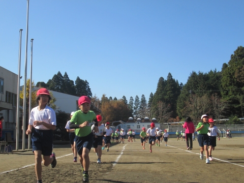 明後日の校内マラソン大会に向けて,最後のマラソン練習がありました。(明日は教育事務所訪問のためマラソンは中止です。)今日は天候にも恵まれ,絶好のコンディションの中,それぞれの目標に向かって元気よく走る姿が見られました。