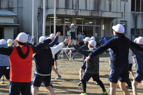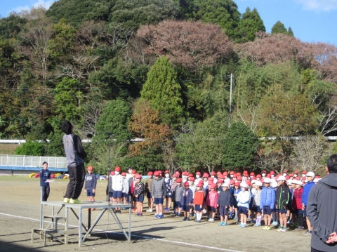 体育主任の先生のかけ声で,「元気でーす!!」の声が夷隅の森に響きました!