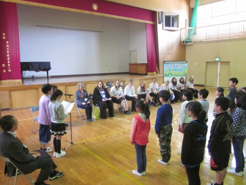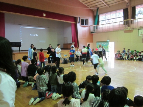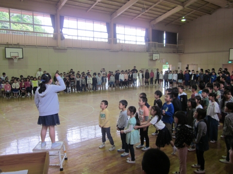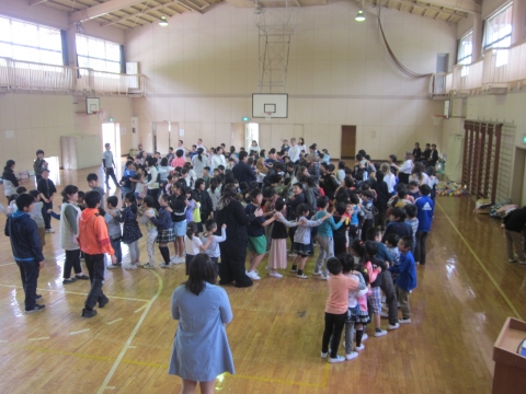 オープニングセレモニーのスピーチでは,緊張している表情でしたが,交流ゲームが始まるとすぐに打ち解け,たくさんの笑顔が見られました。 歌を歌ったり,ダンスを踊ったりとても楽しい時間を過ごすことができました。