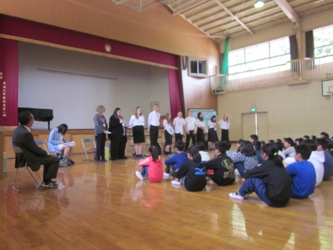 アメリカウィスコンシン州にあるウォパン中学校の生徒さんたちが来校しました。近年は岬中学校区と隔年で小学校訪問で行われるため,久しぶりの印象です。