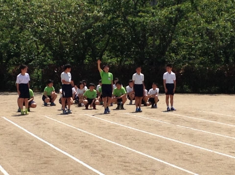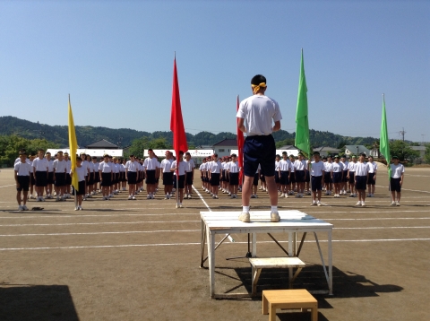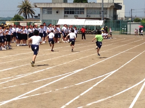 快晴のこの日、国吉中学校の体育祭に6年生が参加しています。