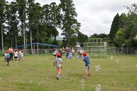 すごい数のシャボン玉が飛んで、子どもたちが大喜びしていました。