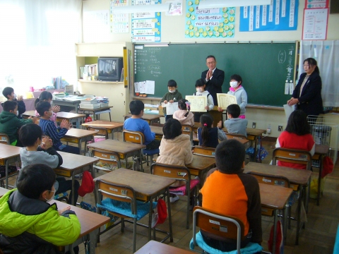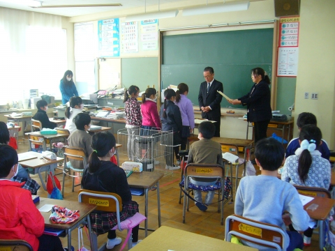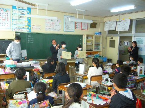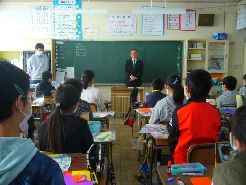賞状伝達のあとは,校長先生から,各学年の子どもたちへ,それぞれのメッセージが送られました。どの学年の子どもたちも黒板の前に立つ校長先生の姿に特別な雰囲気を感じながら,しっかりとした態度で臨むことができました!とっても立派でした!