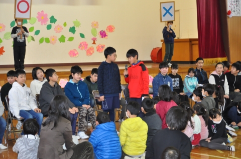 6年生クイズで,さらに6年生について詳しくなりました。6年生のインタビューを聴くたびに,体育館に温かい拍手がおこりました。