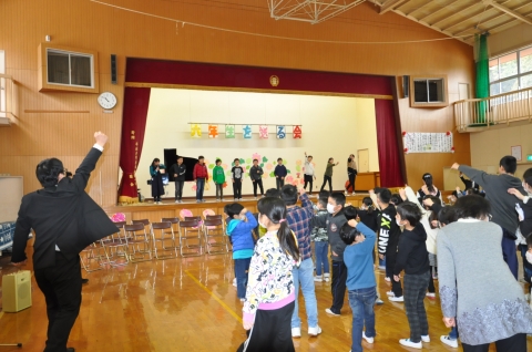 猛獣がりゲームでは,5年生が特にステージ上で頑張りみんなの雰囲気をつくってくれました。