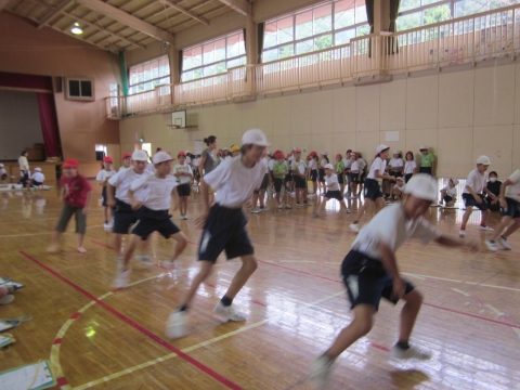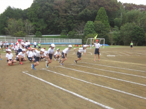 高学年の児童が小さい子どもたちをリードしながら、それぞれの種目に移動していきました。
