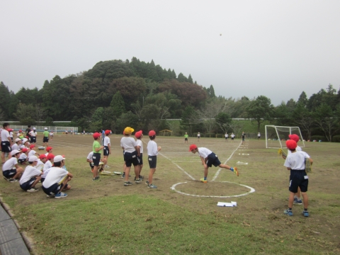 今日は、全校児童が新体力テストに取り組んでいます。