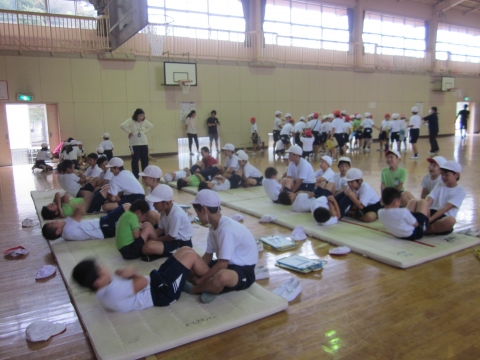 走ること・投げること・跳ぶこと・持久力や瞬発力など子どもたちの体力のデータを取っていきます。昨年の記録をどれだけ超えることができるのか、みんな真剣に取り組んでいました。