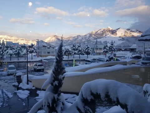 2日目の朝がきました。心配していた天気は、今のところ悪くありません。青い空がみえます。風も吹いていません。