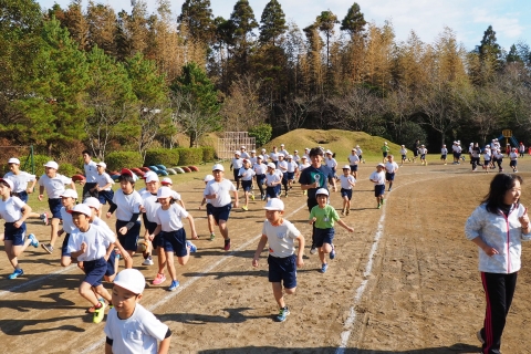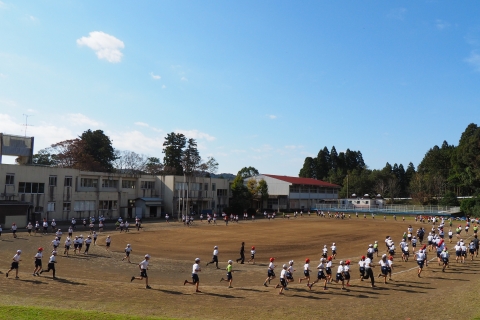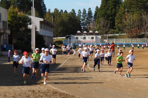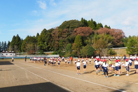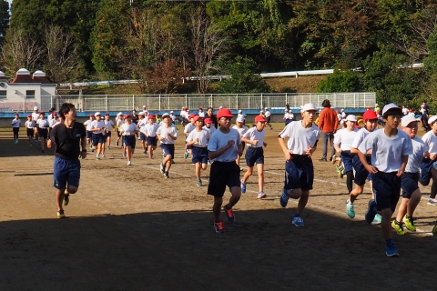 東海小の先生が今日は2年生の授業を参観に,来てくださっています。一緒にマラソンを走ってくれています!