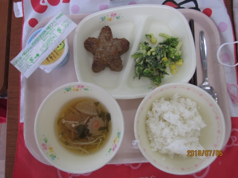 今日の給食は星形 ハンバーグでした!