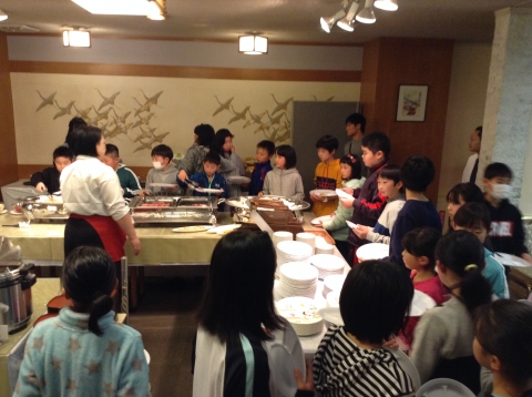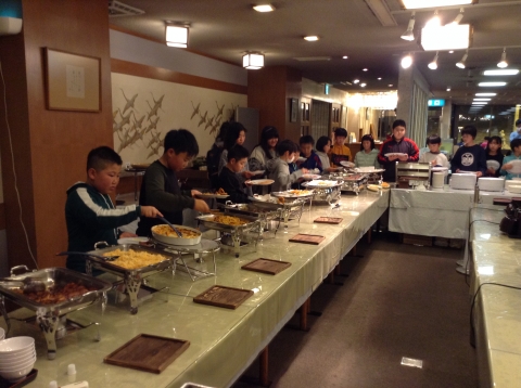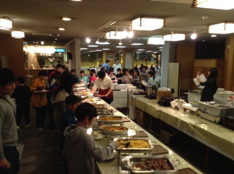 子どもたちが、心から楽しみにしていた、夕飯のバイキングが始まりました。