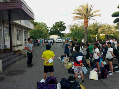 6年生の子どもたちを乗せたバスが、予定よりやや早く午後5時45分に夷隅小に帰ってきました。解散式では、代表児童から2日間の楽しかった思い出の一部が紹介されました。一生に一度の小学校の修学旅行、全員が参加して、元気に楽しく過ごすことができて本当によかったと思います。お疲れ様でした。