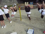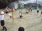 てつぼうの学習をしていました。手や腕を「ぴたっと」「だら~んと」「くるっと」させる技を一生懸命挑戦していました。最後の振り返りの時間では、技を完成させるコツを発表していました。