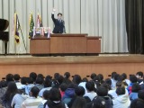 生徒指導の先生より、冬休みの過ごし方を「お お ゆ き」の合言葉でお話がありました。