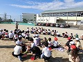 1.2年生が合同でマラソンをしていました。業間マラソンで鍛えた体力を存分に発揮し最後まで走りきることができました。