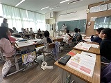 「正しいことだと思っていても、できないとき」について、考えました。コの字型に机を並べて、お互いの意見を聞いてディスカッションしました。