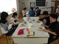 各班に分かれ,思い思いのホットケーキを作りました。どの班も工夫されたものでした。会食も楽しくできました。