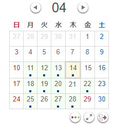画面左側に表示されているカレンダー下部の、3つ並んでいるアイコンの真ん中にある ← → 矢印部分をクリックすると、行事が表示されます。
