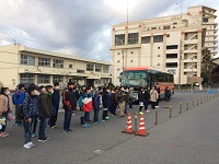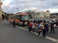 6年生が卒業遠足に出発しました。欠席者もなく、元気に全員参加できました。
