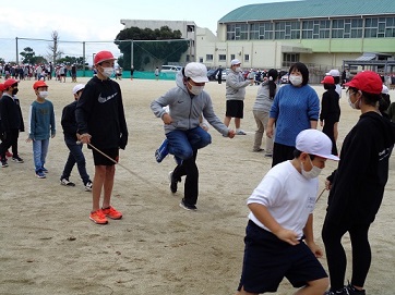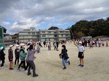 11月30日(火)、カッキーン活動では、今回から「長縄跳び」が始まりました。各グループとも上級生が中心となって、低学年の児童が流れに上手に乗れるように声をかけ合いながら元気一杯活動に取り組んでいます。