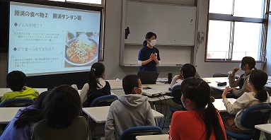 11月26日(金)「食と健康教室」が5年生を対象に行われました。地元発祥のメニューである「勝浦タンタンメン」について、その生い立ちや食材の効用などの話がされると、活発に意見を発表しあって授業が大いに盛り上がりました。