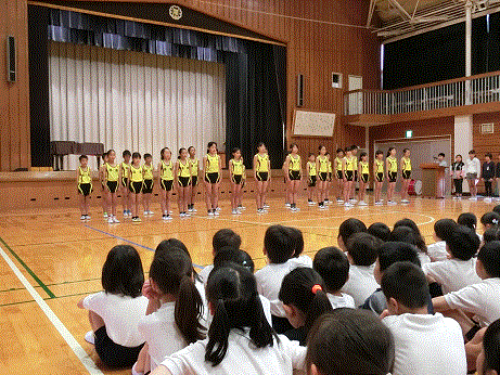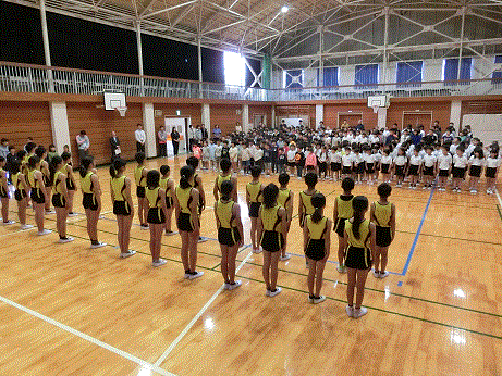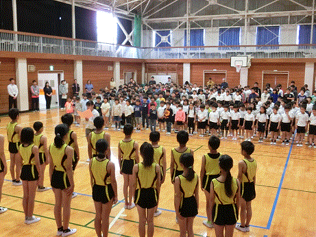 児童代表による励ましの言葉の後、全校児童で応援をしました。