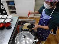 今日の実習では,文化鍋を使ってご飯を炊きました。多くの家庭では,電気炊飯器を使っていると思います。初めて文化鍋でご飯を炊いた子どもも見られました。おいしいご飯が炊けました。ぜひ,ご家庭でもお子さんと一緒に鍋でご飯を炊いてみてください。