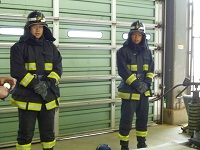 その後,消防自動車・救急車の中や装備を見学したり,消防服を着せていただいたりしました。貴重な体験ができました。
