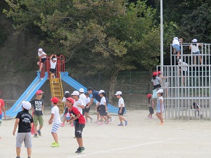 担任や支援員も一緒に大縄跳び,ドッジボール,追いかけ鬼等を行いました。どの学級も思いっきり,楽しい時間を過ごしました。