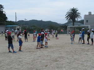 6年生が中心となり,投げる・捕るの練習をしました。大会に向けてこれからも練習していきます。