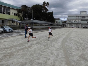 50m走を終えた子どもが記録を伸ばせたことに喜んでいる姿が印象的でした。これから挑戦するすべての種目で記録更新ができるように頑張っていきます。