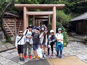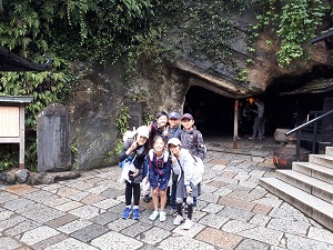 班行動が始まりました。天候も落ち着いてきて、班行動も順調に進んでいます。(銭洗弁財天に到着した班の様子です。)