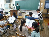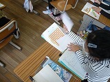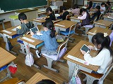 鍵盤ハーモニカで、「ぷっかりくじら」を練習していました。各自で吹いたあとは、友達の演奏を聴いて、評価していました。練習して更に上手になってくださいね。