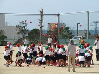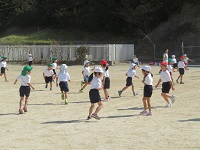 勝浦市立中央保育所年長さん・勝浦市立幼稚園の年長さん・勝浦小学校の1年生が,勝浦小学校のグラウンドで,保幼小連携交流会で「ミニ運動会」を行いました。