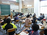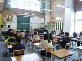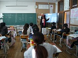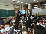 数字について学習していました。大型モニターに現れる数字を英語で表現して、難しい発音はALTの言ったあと、リピートしていました。