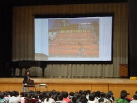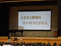 全校朝会の中で,「ふるさと勝浦」について,校長先生のお話を聞きました。