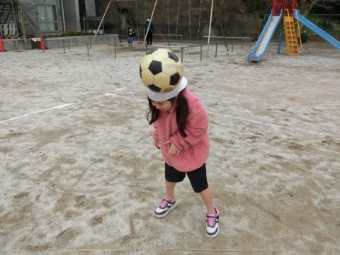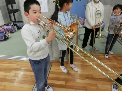 ボールに触ったり楽器を吹いたりしながら、