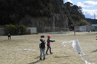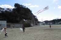 あいにく,たこあげにはよい風ではありませんでしたが,1年生の子どもたちは一生懸命に自分の作ったたこをあげていました。たこあげに適した風の時に,みんなで空高くたこをあげたいと思います。
