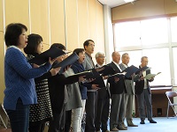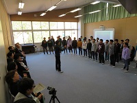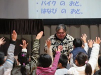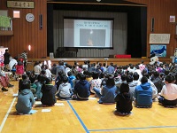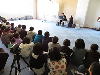 第1部では,6年生と講師の方々とが互いの歌声を聞いたり,音の紙芝居「くさった風」を視聴したりしました。