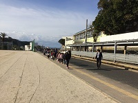 今日は、平成31年度郁文小学区から登校する子ども達が、4月からの登校時刻にあわせてスクールバスを使い、勝浦小学校までの登校の確認を行いました。
