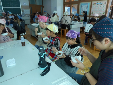 4年生が勝浦産のひじきを使って磯煮をつくり、おいしくいただきました。
