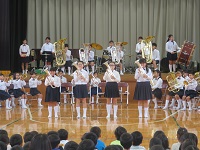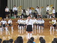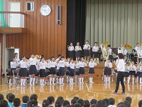 6月22日(金)に勝浦市文化芸術交流センター(キュステ)で行われる勝浦市音楽発表会に参加する音楽部の壮行会が行われました。今までの練習の成果を全校の皆さんに披露してくれました。