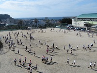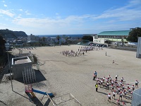 昨夜からの雨でグラウンド状態が心配されましたが,朝からの日差しにより水たまりもなくなり,業間マラソンが実施されました。