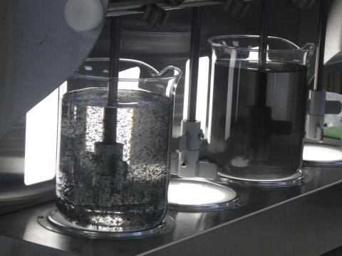 水を85m上方に運ぶ揚水機や水の汚れを薬品で固める実験を