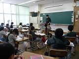 消防署の人たちの仕事について学習していました。消防服、マスク、ボンベ等について、子どもたちは先生の質問に、活発に答えていました。11月29日(金)は校外学習で勝浦消防署へ見学に行く予定です。