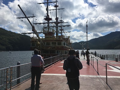 これから海賊船に乗り、芦ノ湖を遊覧します。