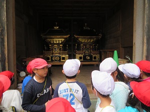 朝市では,朝市の様子を見学したり,朝市に品物を出している方々に質問したりしました。また,朝市を見学した後,遠見岬神社にいき,勝浦の市内の様子を見学したり,御神輿を見せていただいたりしました。とても充実した見学ができました。