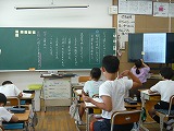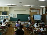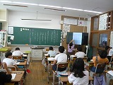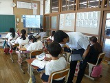文章を見直すときに気をつけることを確認していました。子どもたちは、大型モニターに拡大された文章をみて説明を聴いていたので、とてもわかりやすかったです。